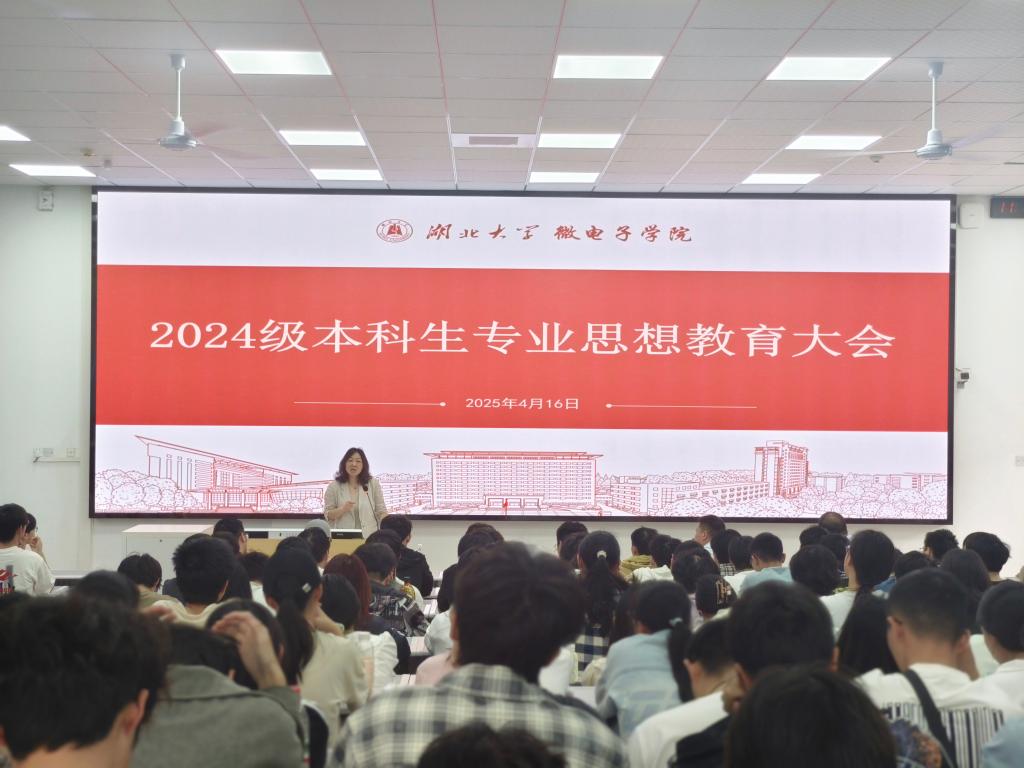 2025年4月16日上午10点,我院在阳逻校区B300教室召开2024级本科生专业及思政教育会议。学院党委书记王晓玲、院长游龙、党委副书记田务民出席,2024级全体本科生共计297人参与。