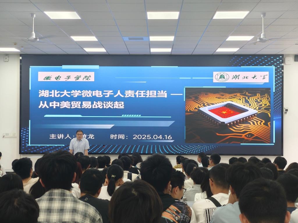 游龙院长从中美贸易战谈起,深入剖析其背后的核心因素——科技、资本与市场,强调高科技领域的竞争是当前国际竞争的重中之重,尤其是半导体技术的封锁与反制,使得科技成为主战场。游龙回顾半导体产业的发展历史,深情讲述了老一辈科研工作者信念坚定、敢为人先、无私奉献的精神,指出这不仅是对历史的回顾,更是当代学生和科研工作者的楷模。他呼吁微电子学院本科生继承自力更生、无私奉献的科研信仰,在半导体领域努力拼搏,为国家科技事业贡献更多力量,肩负起时代赋予的责任与使命。