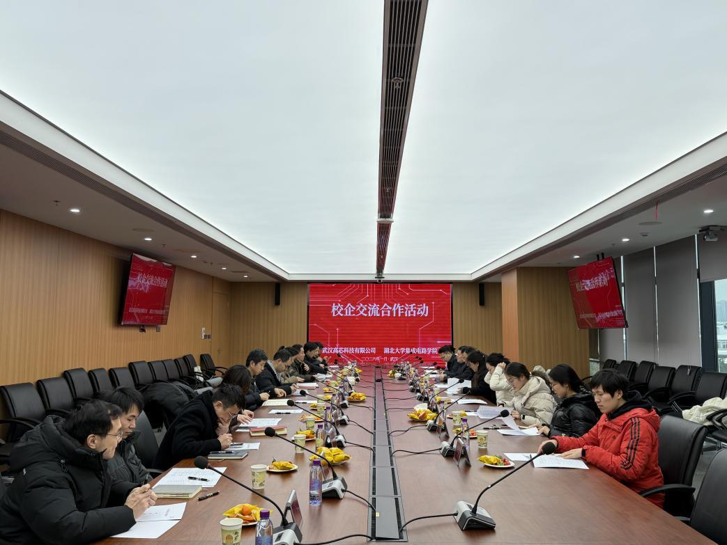 随后,双方在新一号楼301会议室座谈交流。高芯科技领导介绍了公司深耕红外技术、拓展集成电路与芯片领域的发展规划,强调企业对高素质专业人才的迫切需求,建议高校以产业需求优化人才培养模式,并表示将回访学院深化联动。人力资源部主管及湖大校友代表分享了校企合作与招聘情况,校友们点赞湖大学子专业扎实、动手能力强、务实肯干,能高效转化所学知识。