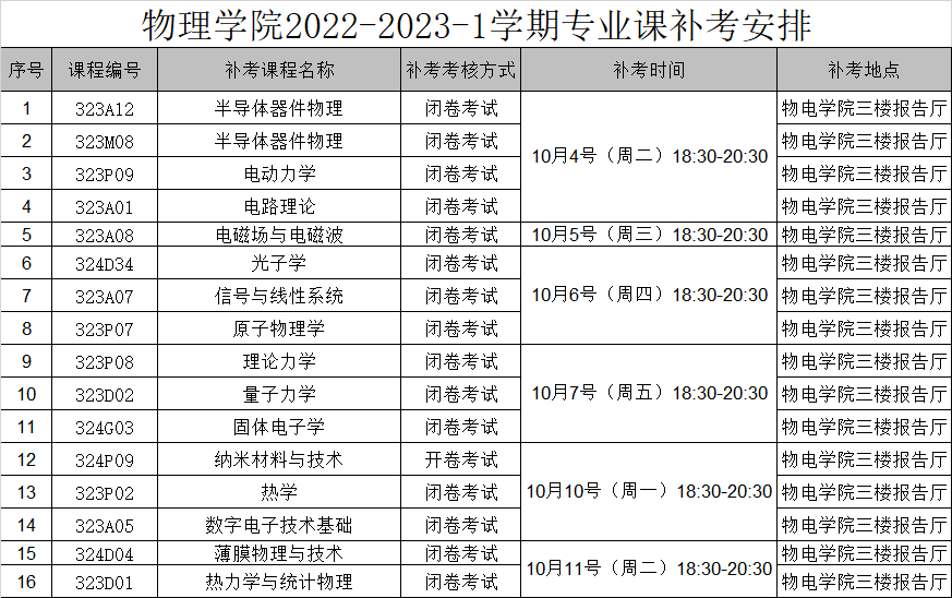 物理学院、微电子学院2022-2023学年度第1学期公开课概览