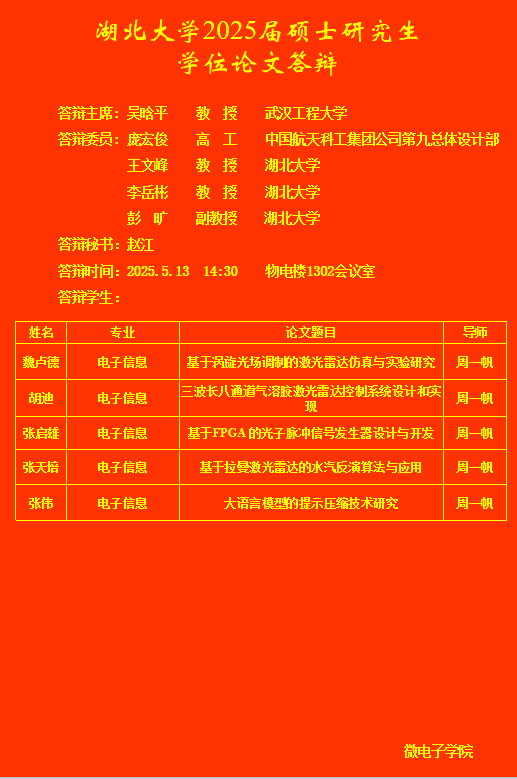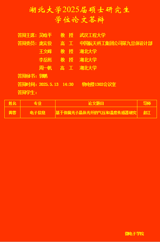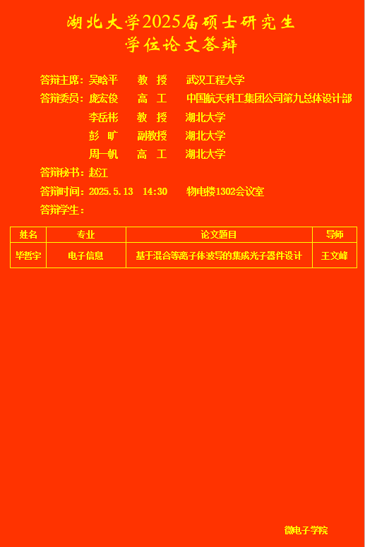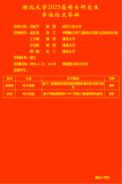 微电子学院2025年上半年研究生答辩公告(五)