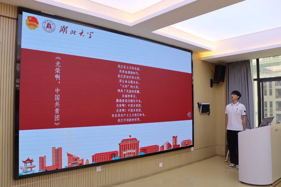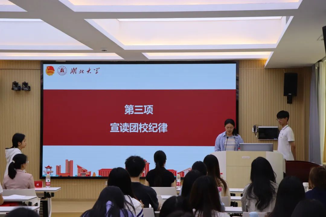 在主持人微电子学院团委组织部习宇祥同学的带领下全体参会人员起立齐唱《光荣啊,中国共青团》开班仪式正式拉开帷幕。