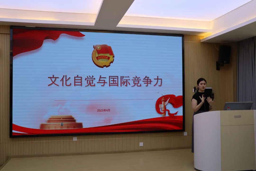 校团委副书记盛楠老师结合中华文明探源工程等鲜活案例,使抽象的文化概念具象为可感可知的精神力量。让同学们认识到,文化自信是民族脊梁站在新的历史方位,文化自信如同灯塔照亮复兴征程,我们既要当好文化基因的解码者,更要成为文化创新的实践者。